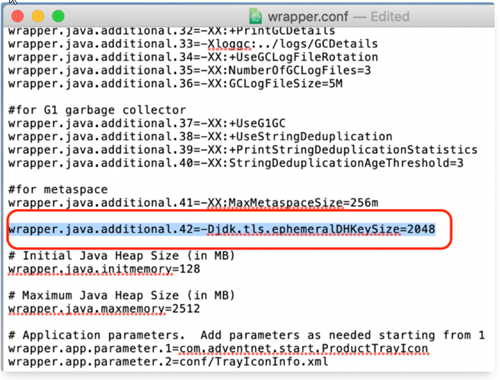 jdk.tls.ephemeralDHKeySizeرا به"2048"تنظیم کنید (مثال:-Djdk.tls.ephemeralDHKeySize=2048). - مراحل پیکربندی: